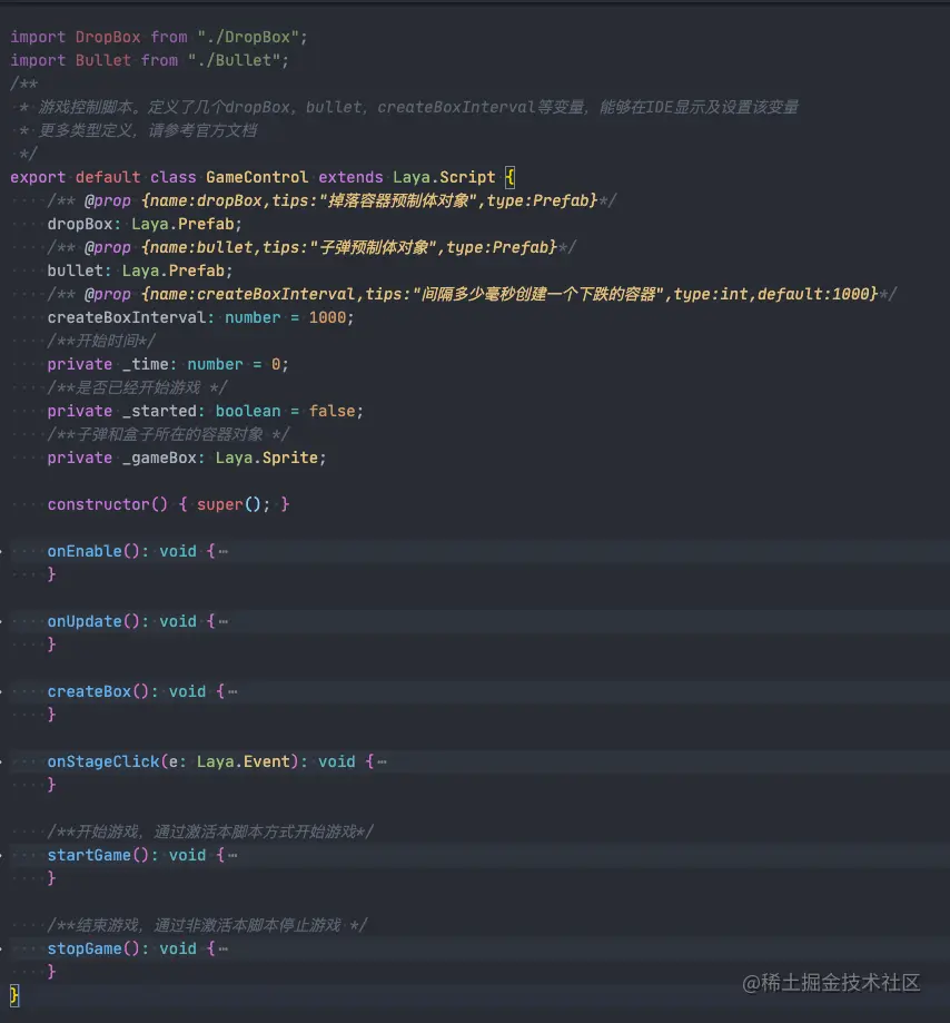 c. GameControl.ts 继承 Laya.Script,游戏控制脚本类