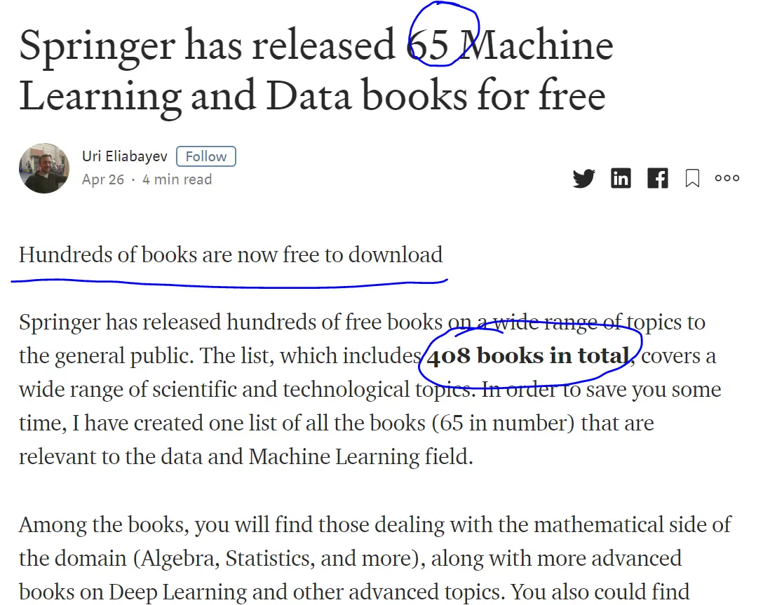 这么多书,没必要全下。Medium 上有程序员就梳理了 65 本 Python、机器学习、数据分析、计算机视觉、高等数学等领域的书籍。