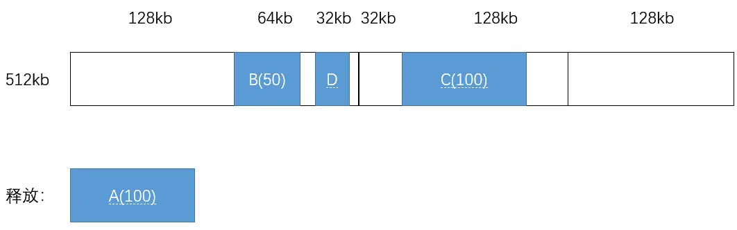 进程 A 释放 100kb:
