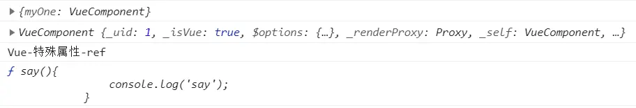 console.log(this.$refs.myOne.say);