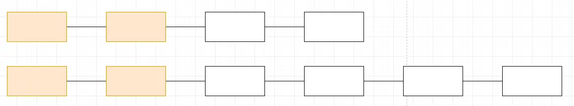 那么如何寻找两个有序数组的第 K 小的数呢?可以假设前 K 小的数的一半分布于数组 nums1,另外一半分布于数组 nums2. 那么整体分布可能如下图