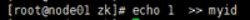 进入数据目录/var/sxt/zk,执行:echo 1 > myid echo 2 > myid echo 3 > myid 分别在node02 node03 node04操作