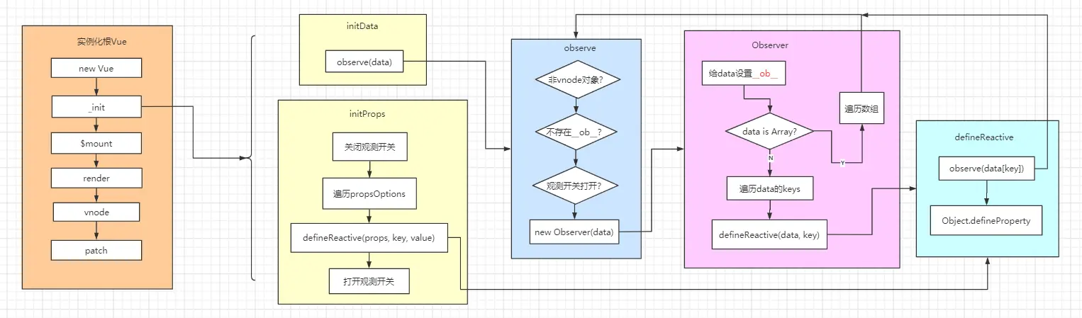 可以看到,无论是 props 或是 data 的初始化都是把它们变成响应式对象,这个过程我们接触到几个函数,接下来我们来详细分析它们。