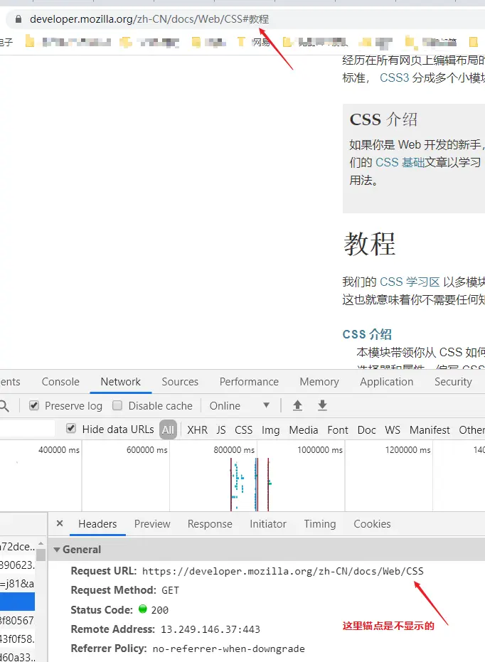 其中要注意的是:锚点本例中看起来有中文,实际上不支持中文,锚点无法在Network面板上可视化,而且不会传给服务器。 具体怎么样的情况呢?
