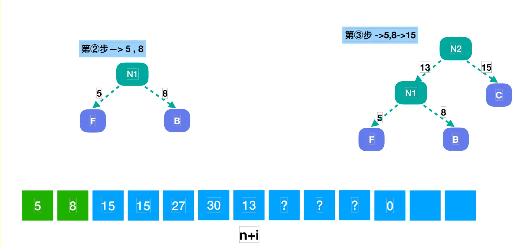 //2.构造哈夫曼树haffTree的n-1个非叶结点