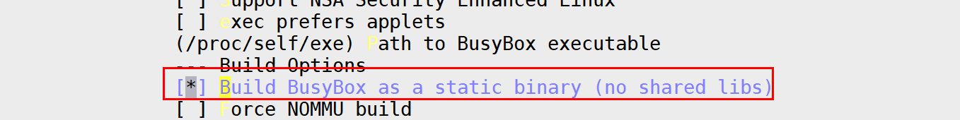 勾选上Build BusyBox as a static binary (no shared libs): [*] Build BusyBox as a static binary (no shared libs)