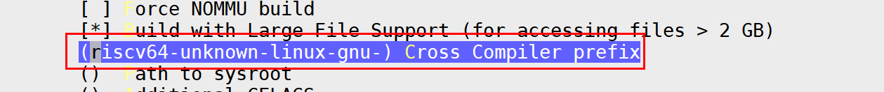 配置交叉编译工具链的前缀(riscv64-unknown-linux-gnu-) Cross Compiler prefix: