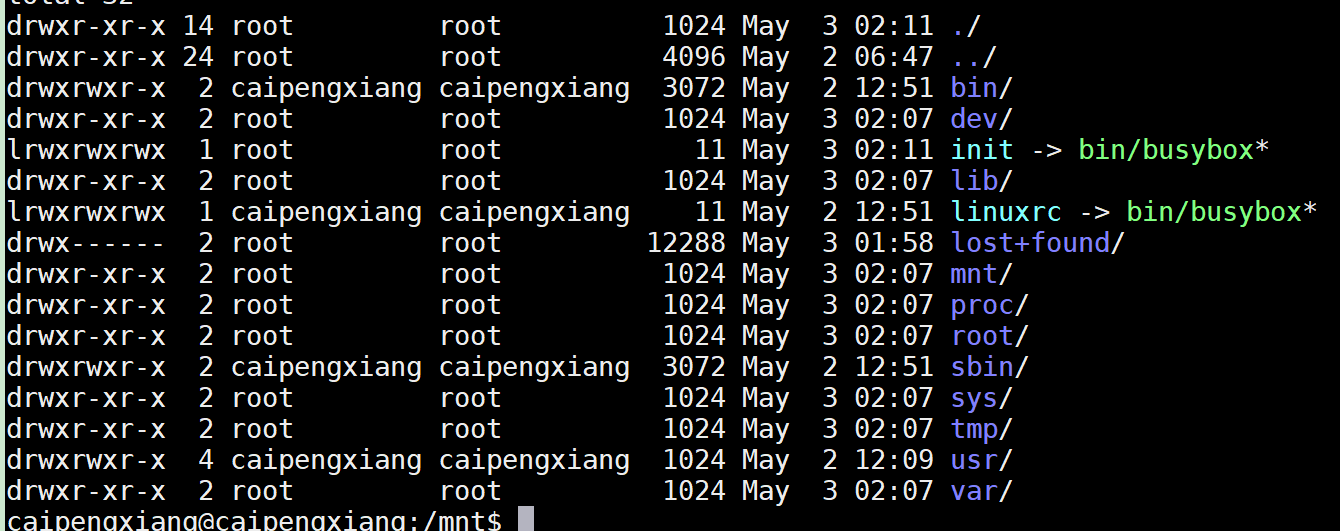 $ sudo cp -av /home/caipengxiang/software/linux-kernel/busybox-1.26.2/_install/* ./