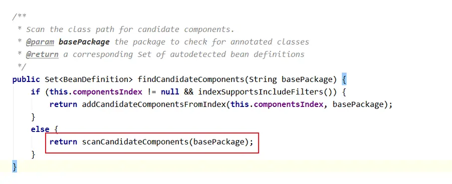 public Set<BeanDefinition> findCandidateComponents(String basePackage) {