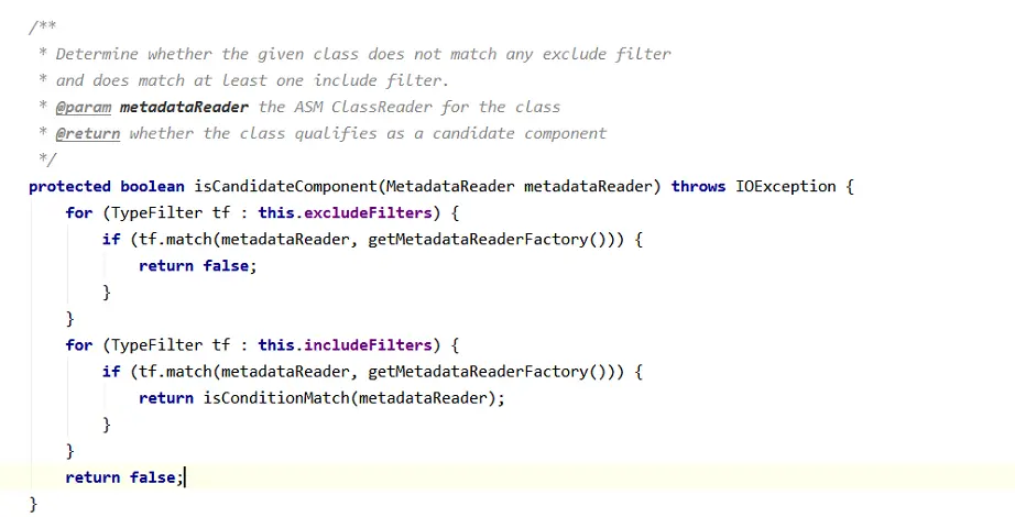 // 执行判断是否符合 过滤器规则,函数内部用过滤器 对metadataReader 过滤