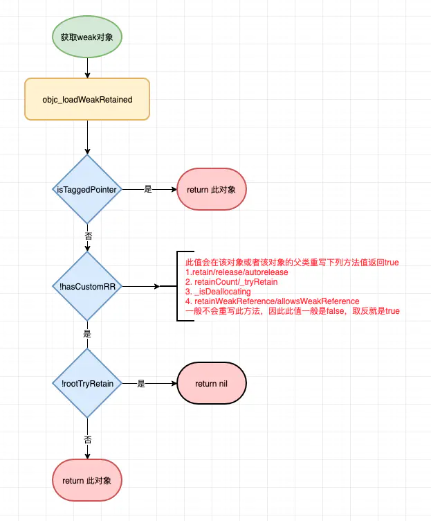 读取:objc_loadWeakRetained(ARC)、objc_loadWeak(MRC)