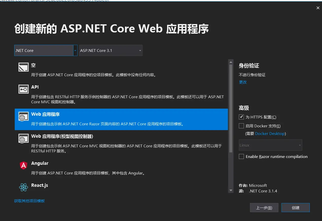 第一步、创建一个ASP.NET Core 项目