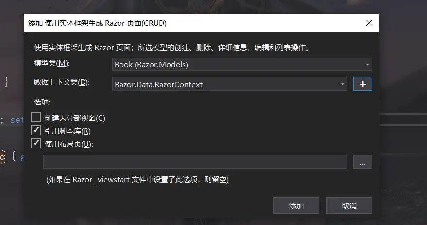 第三步,添加Razor页面