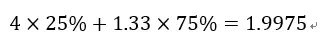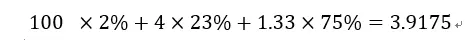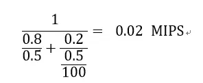 又如,如果浮点开平方操作 FPSQR 的比例为 2% ,它的 CPI 为 100 ,其他浮点操作的比例为 23% ,它的 CPI 4.0,其馀指令的 CPI 1.33,则该处理机的等效 CPI 为