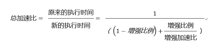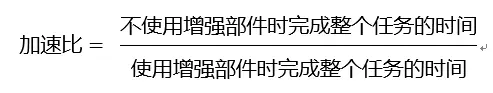 阿姆达尔定律定义了采用特定部件所取得的加速比。假定使用某种增强部件,计算机的性能就会得到提高,那么加速比就是如下公式所定义的比率: