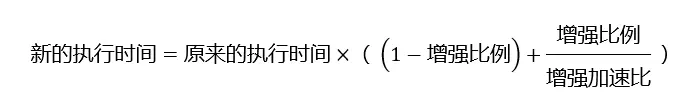 (1)在原有的计算机上,能被改进并增强的部分在总执行时间中所占的比例。这个值称之为增强比例,它永远小于等于 1(因为增强的部分肯定属于原有系统的一部分)。