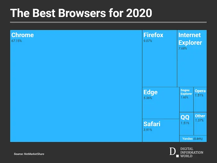 我觉得这个没得比吧,浏览器速度是 Google 吹牛的本钱,启动速度、载入网页都相当迅速,自然排在优点的第一位,至少个人感觉论网页相应速度还是chrome更快一些。至于市场份额见下图,放眼全球市场,这个市场份额更能证明chrome浏览器强大的功能,而对于国内浏览器,就比较惨淡了。 2019年12月Chrome浏览器市场份额高达67.15%。