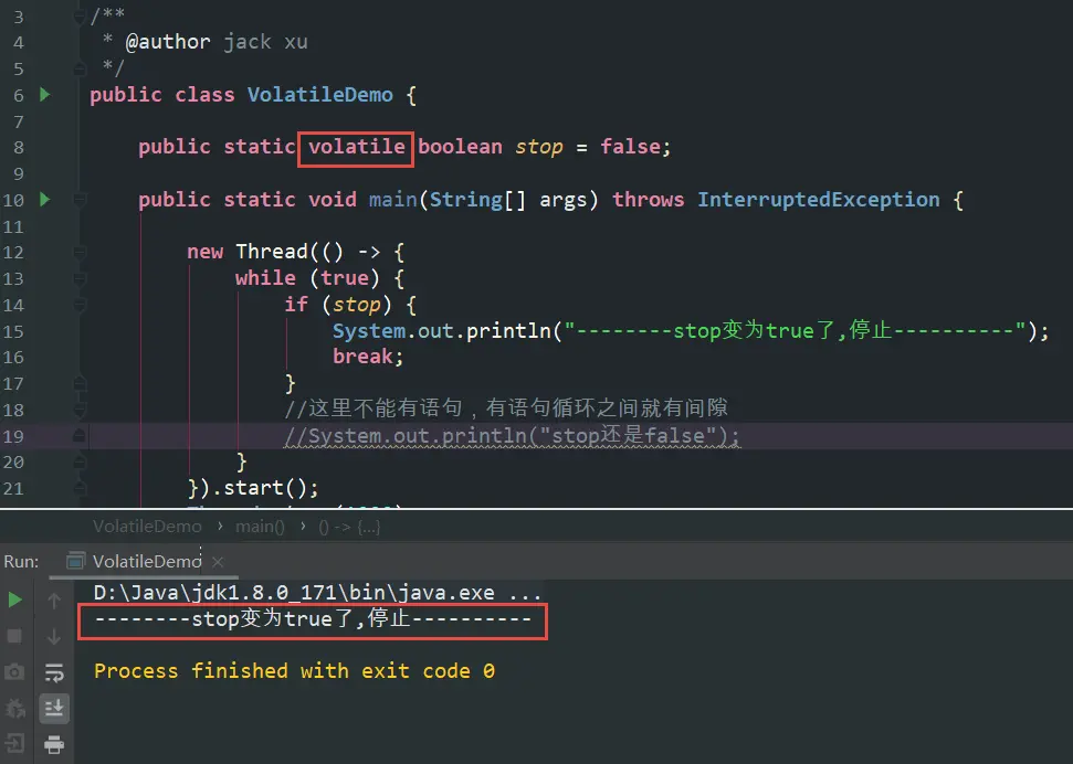 System.out.println("--------stop变为true了,停止----------");