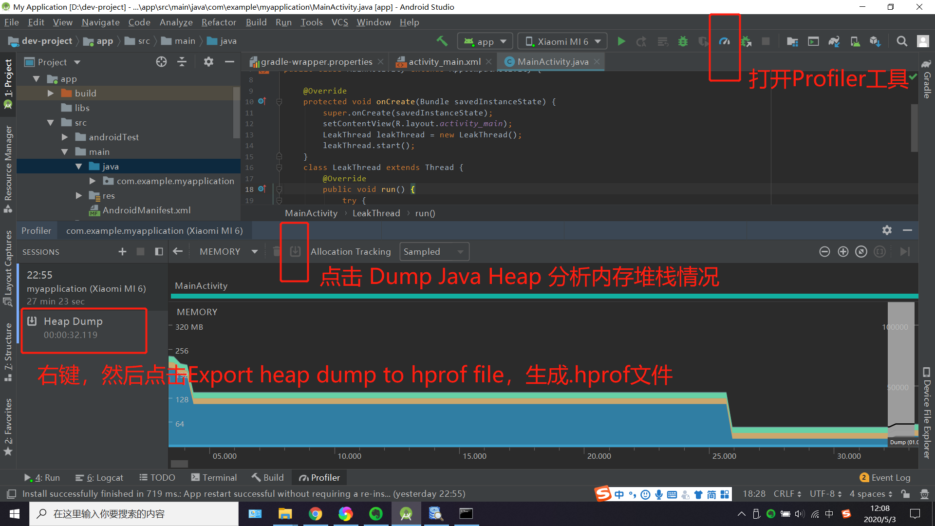 2、使用Android Profiler生成hprof文件