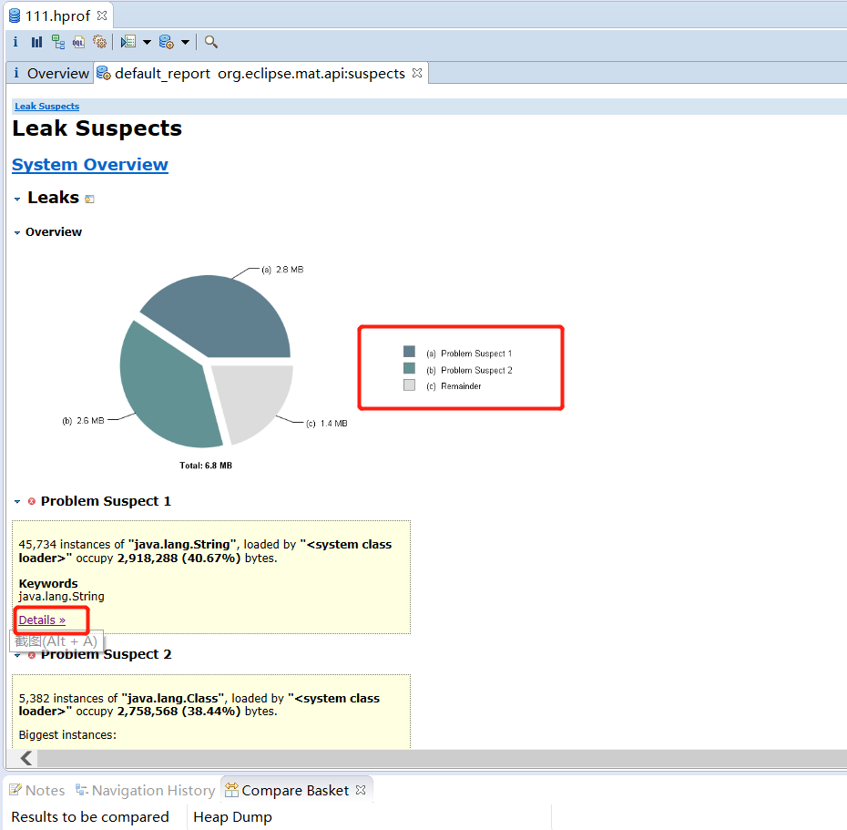 1、Leak Suspects(内存泄漏猜想)