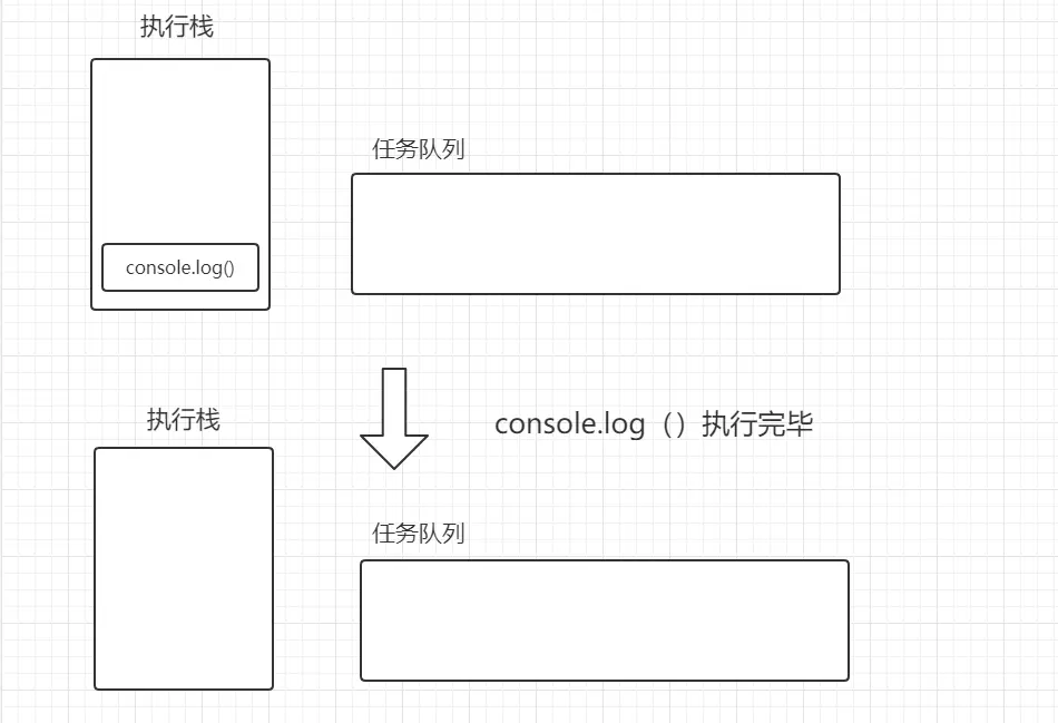 - 第一步,console.log方法进入执行栈,执行完毕后退出。