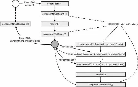 该方法返回布尔值,通过布尔值判定是否进行更新过程,接受两个参数nextProps和nextState,一般通过与当前的props和state比较来确定是否继续进行更新,进而优化流程,终止更新避免不必要的渲染。 -