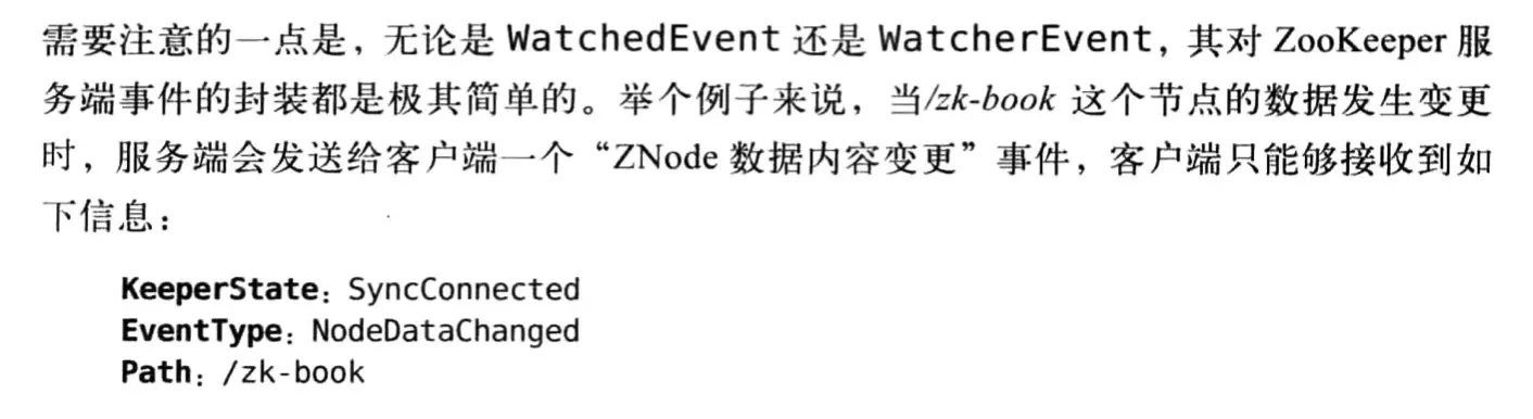 客户端无法直接从该事件中获取到对应数据节点的原始数据内容以及变更后的新数据内容,而是需要客户端再次主动去重新获取数据。