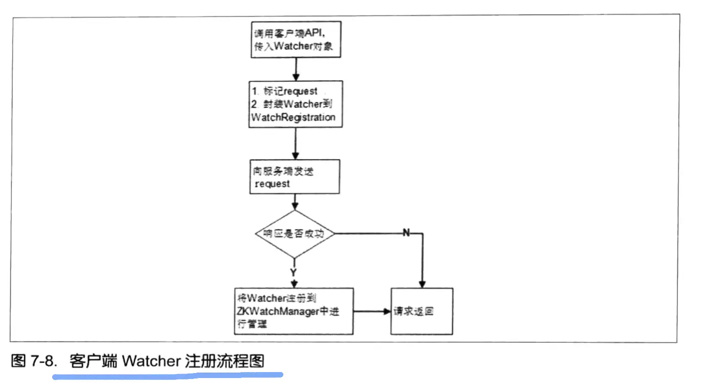- 客户端向服务端注册Watcher时,仅仅只是在客户端请求中使用Boolean类型属性进行了标记,同时服务端也仅仅是只保存了当前连接的ServerCnxn对象。
