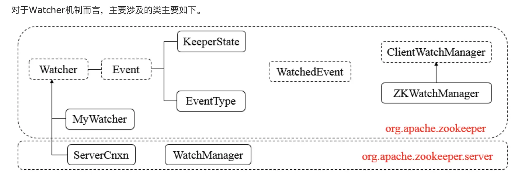 - Zookeeper使用WatchedEvent对象来封装服务端事件并传递给Watcher。