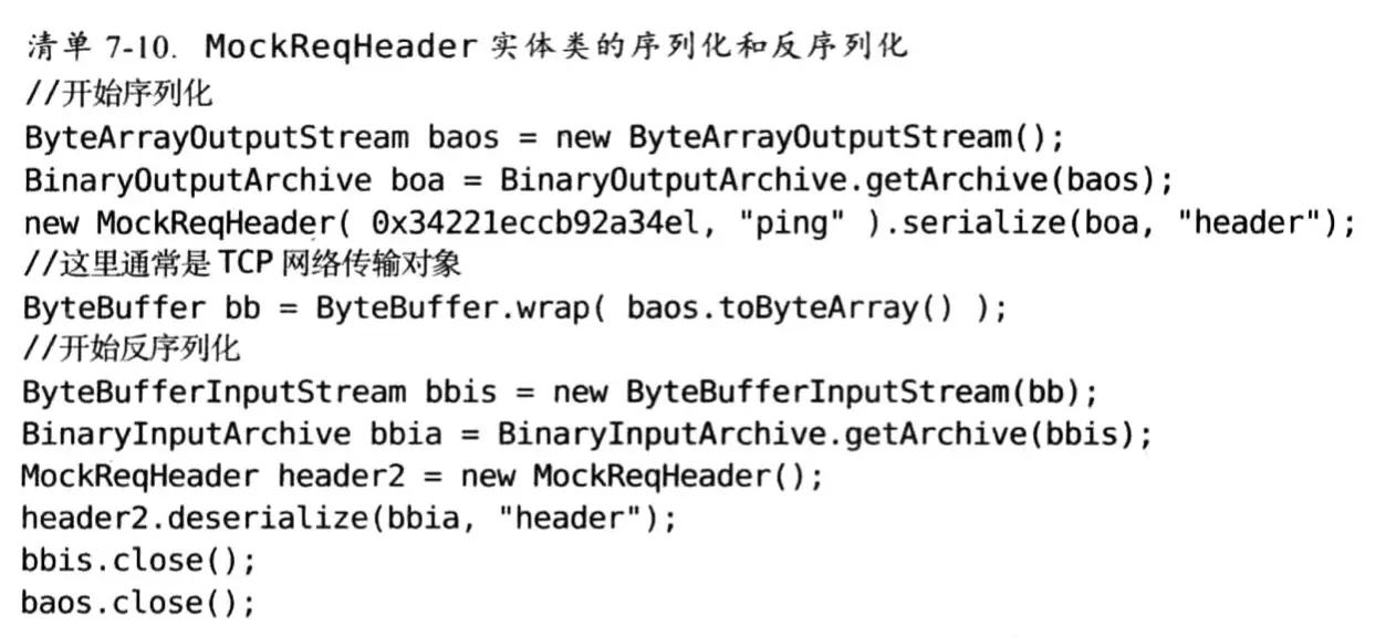 上面这个代码片段演示了如何使用Jute 来对MockReqHeader对象进行序列化和反序列化,总的来说,大体可以分为4步。