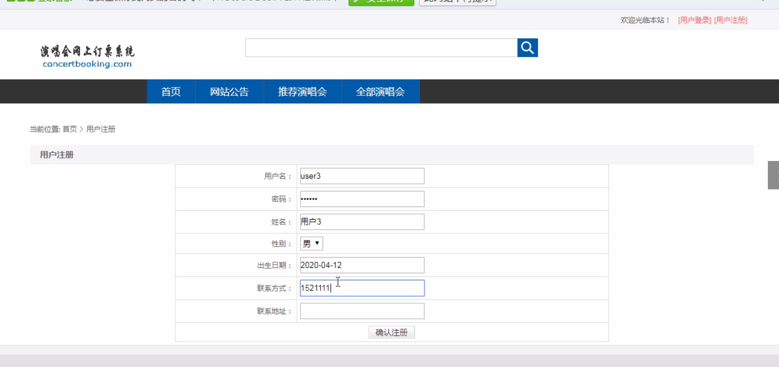 用户通过账号、密码、真实姓名、联系电话等信息可以进行登注册