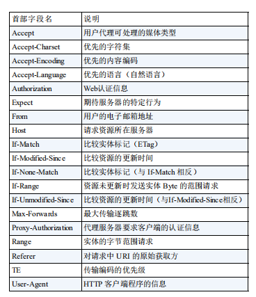 从客户端向服务器端发送请求报文时使用的首部。补充了请求的附加 内容、客户端信息、响应内容相关优先级等信息。