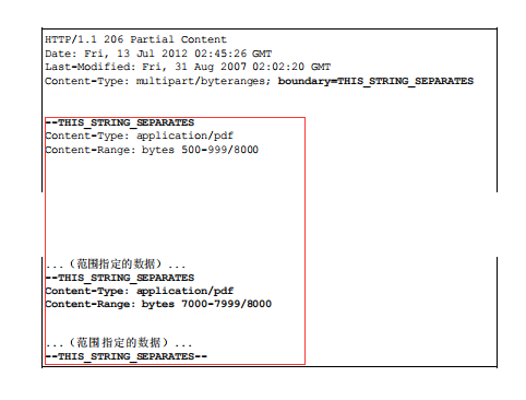 该状态码表示客户端进行了范围请求,而服务器成功执行了这部分的 GET 请求。响应报文中包含由 Content-Range 指定范围的实体内容。