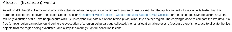 - 从老年代分区转移存活对象时,无法找到可用的空闲分区