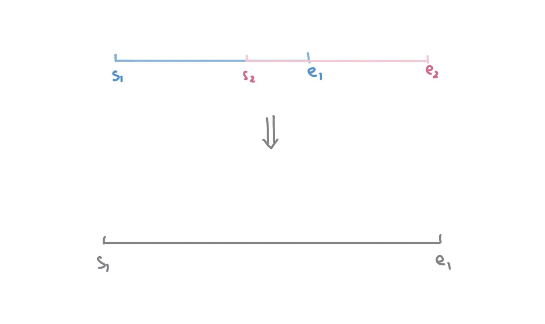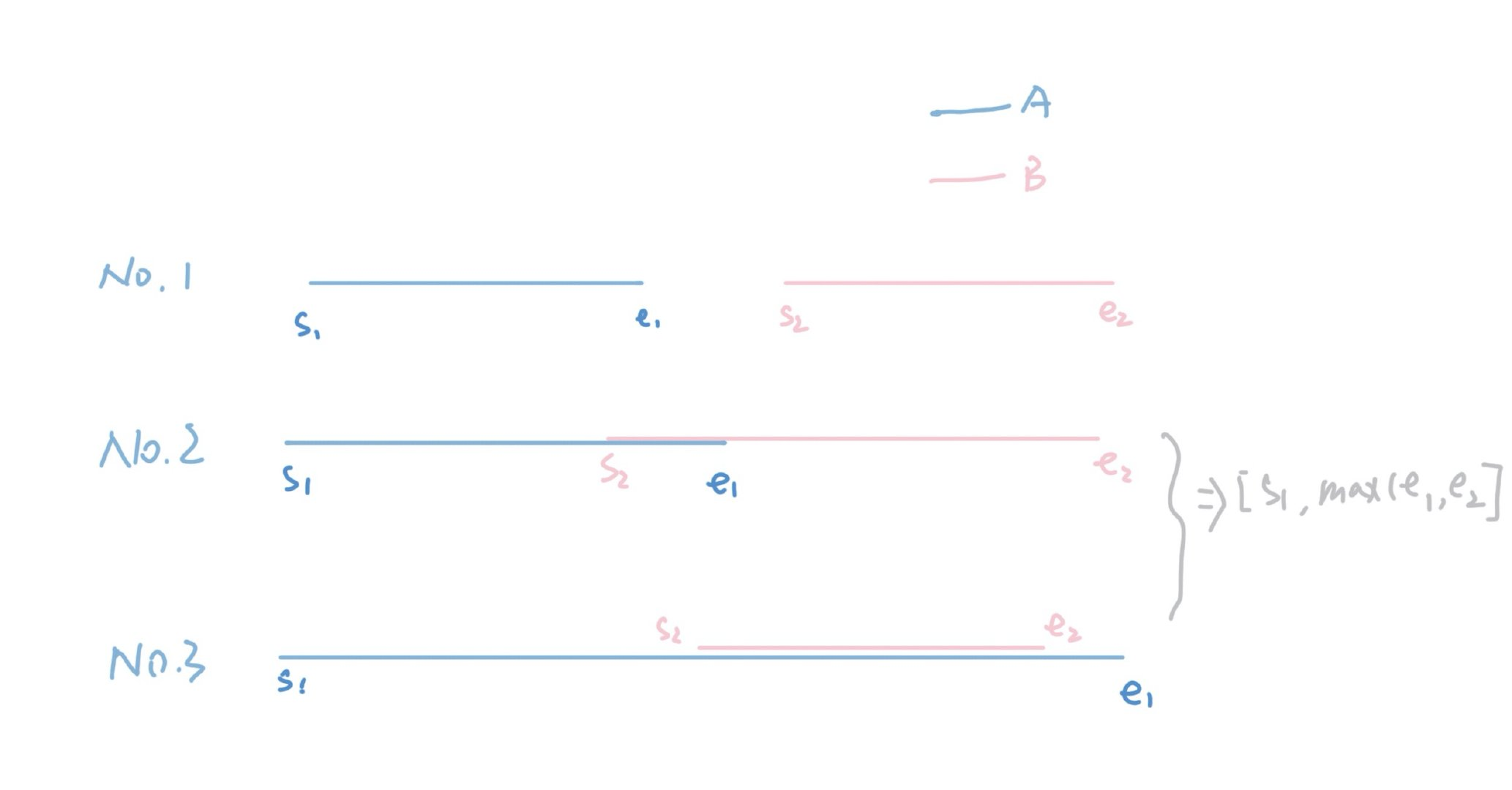 我们把图画出来,很容易发现后面两种能够合并的情况其实可以概括成一种,它们合并之后的结果都是[s1, max(e1, e2)]。