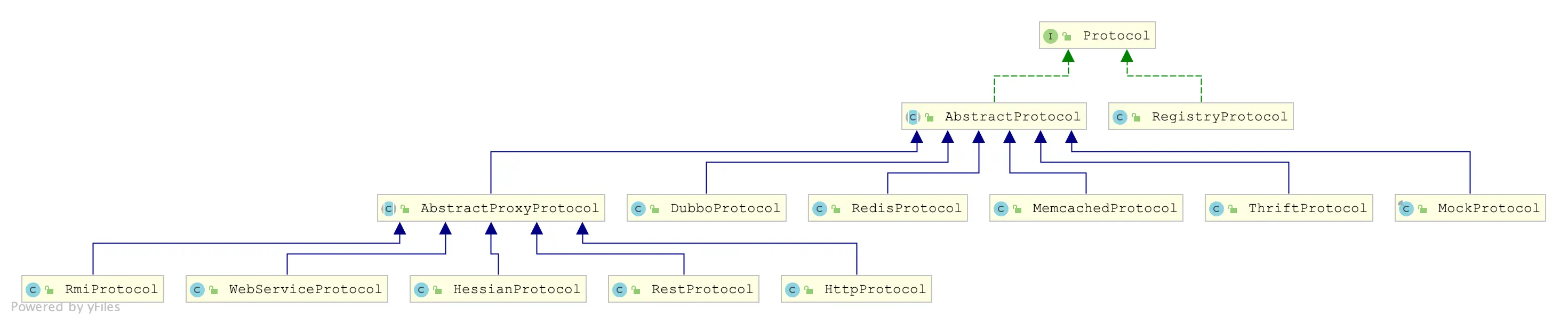 子类有2大块(其实有3块,有一块包装类我这边先给去掉了)分别是RegistryProtocol和AbstractProtocol。