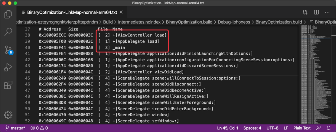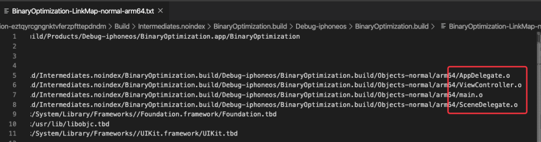 找到LinkMap文件,这里是BinaryOptimization-LinkMap-normal-arm64.txt。