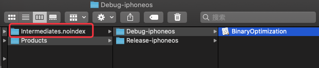 执行⌘ + B构建后,选择Product中的App,在Finder中打开,选择 Intermediates.noindex文件夹,