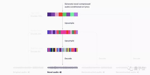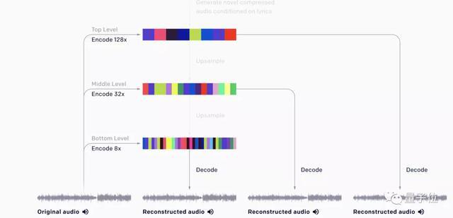 Jukebox使用了一种称为VQ-VAE的量化方法,将音频压缩到离散空间。分层VQ-VAE可以从几个演奏的样本中生成简短的乐器片段。