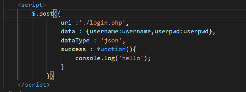 post请求方式即$.post(),有四个参数,分别是:url地址、data(携带的参数是对象形式的)、dataType(期望的数据类型如果为json,会将后端返回的json串自动解析)和success:function(){}(请求成功时执行的函数)。其中url地址是必填参数,其他参数是选填参数,可以没有。 语法形式如下图: