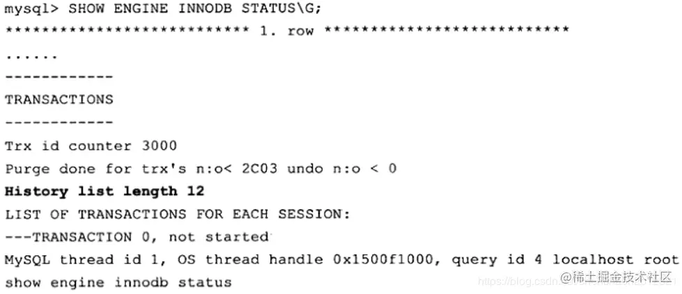可以通过命令 SHOW ENGINE INNODB STATUS来查看链表中 undo log的数量,如