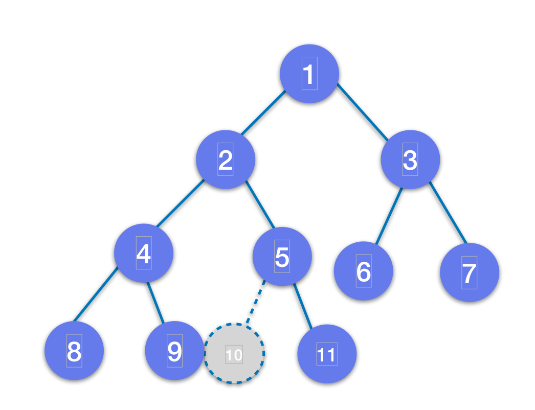 - 如果2i + 1 <= n,那么序号为i的结点右孩子序号为2i + 1;