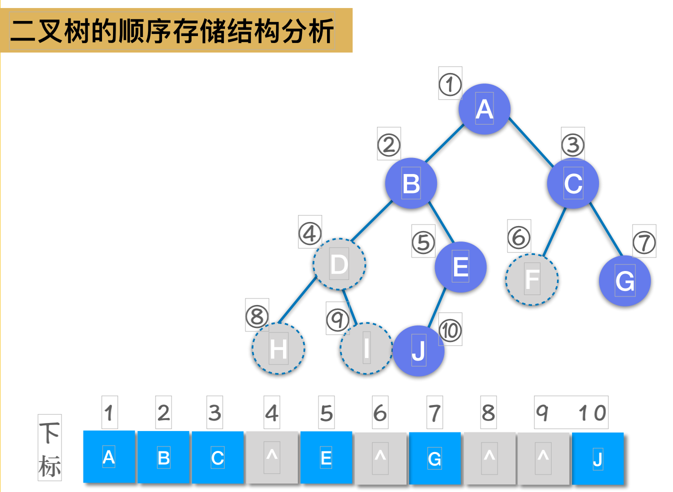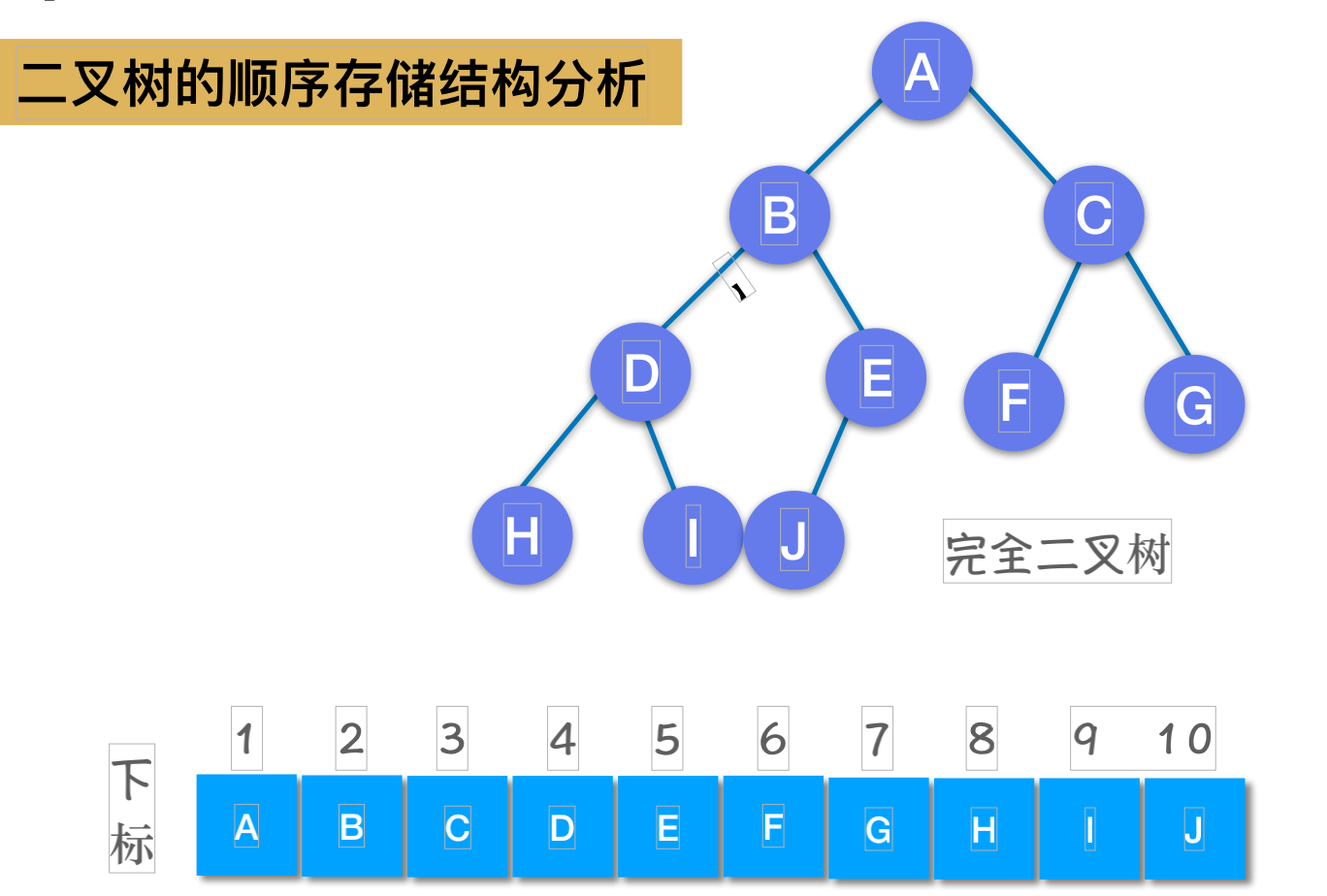 - 如果i = 1,那么序号为i的结点为根结点,无双亲结点