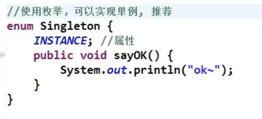 a.借助jdk1.5中提供的枚举实现单例模式。不仅能避免多线程同步的问题,而且还能防止反序列化重新创造对象。