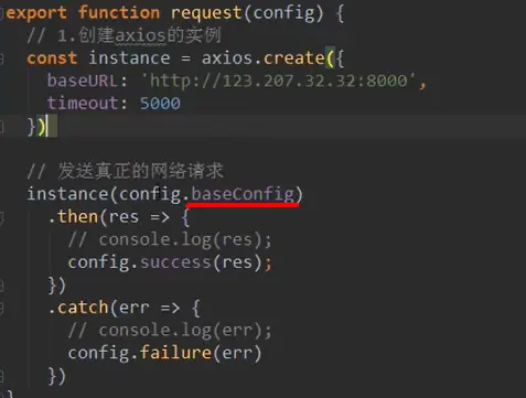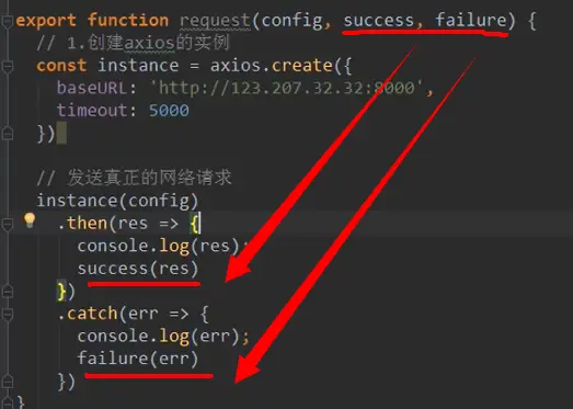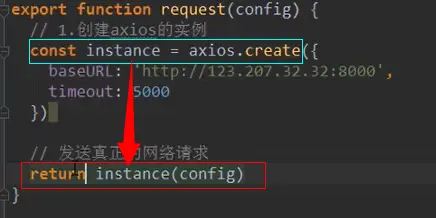 图红框左侧相当于上图中的instance(config),这个东西本身返回的就是promise。。。所以直接return,不用像方法3包装promise