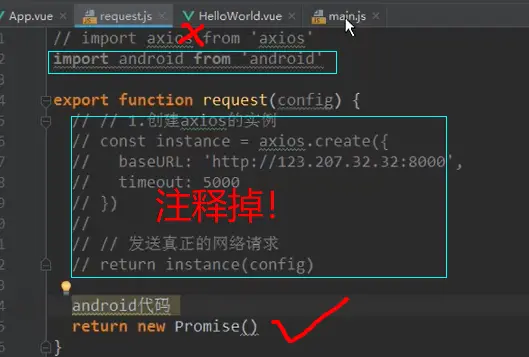 比如哪一天,我们不用axios了,用Android,我们只需要在这个封装的文件里这样修改一下就行。