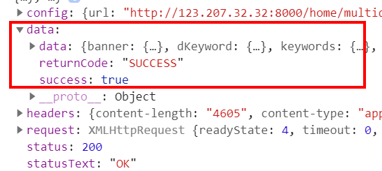 除了data是服务器返回的,其他那些是axios这个框架本身给你加上的一些数据