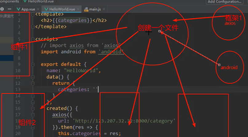 - 我们不要在我们的每一个.vue文件里面都对第三方东西有依赖(如图),如果第三方的东西有一天不能用了,不维护了,就要一个一个的改。。。。