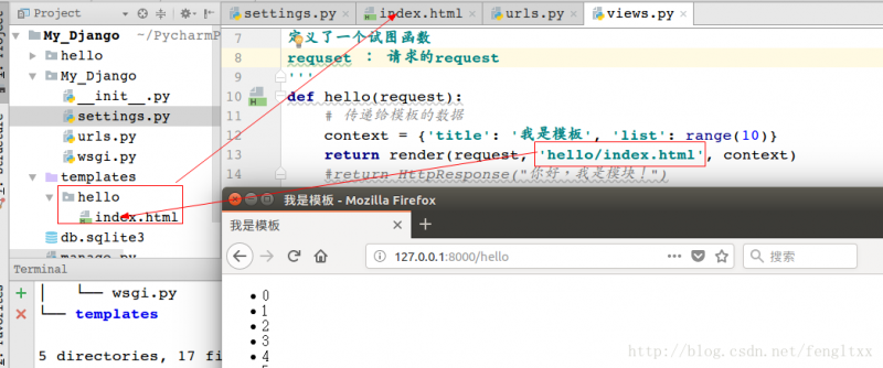 01 02 03 04 05 06 07 08 09 10 11 | from django.http import HttpResponse, request from django.shortcuts import render ''' 定义了一个试图函数 requset : 请求的request ''' def hello(request): # 传递给模板的数据 context = {'title': '我是模板', 'list': range(10)} return render(request, 'hello/index.html', context) #return HttpResponse("你好,我是模块!") |