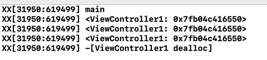每过一秒钟触发一次,触发方法会输出log,在dealloc中将timer置为无效。看似天衣无缝,但实际上,从自定义ViewController1返回时,并不会调用dealloc,原因就是上文中提到的NSTimer对target的保留。这样就会造成ViewController1的内存泄漏了。